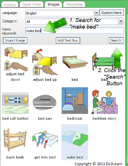 - To edit the image fields, first browse or search for the desired image in the image library on the left of the screen.
