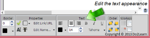 - With the text box selected, you can edit the text appearance using the Text menu at the bottom of the screen. This allows you to change the font type, size, color, and alignment.