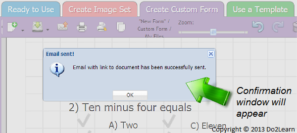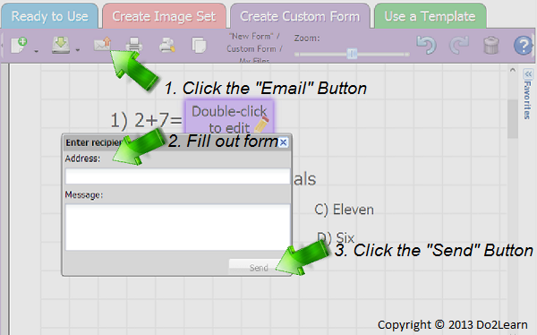- You can then email your worksheet to your student. Click on the Email button, located next to the Save button. A popup window will appear and prompt you to enter the recipient’s email address and a message. Once the form is filled out, click the Send button.