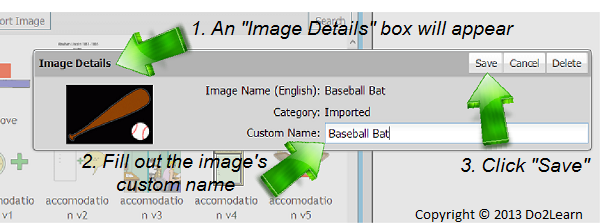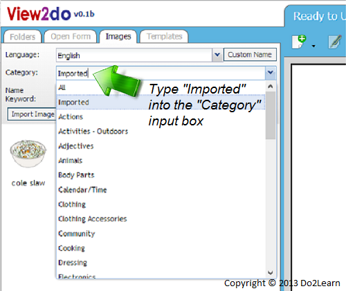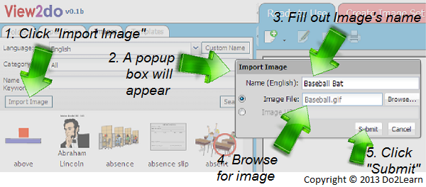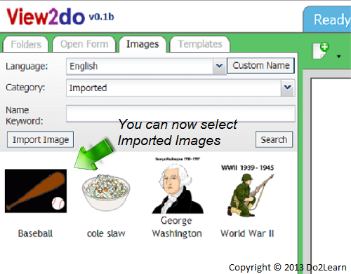 Although View2Do provides an extensive image library, you may find it useful to import your own images for your students’ use. These can be illustrations or even photographs of places and objects that are familiar to your students.
