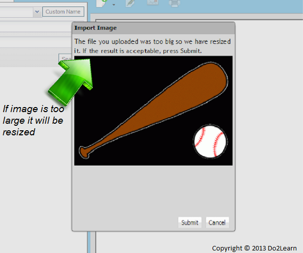 - If your image file is too big, View2Do will automatically resize it for you. You’ll be shown a preview of the resized image and asked to confirm the image before it is uploaded into the library.