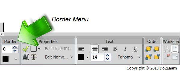 - First, locate the Border Menu at the bottom of your workspace.