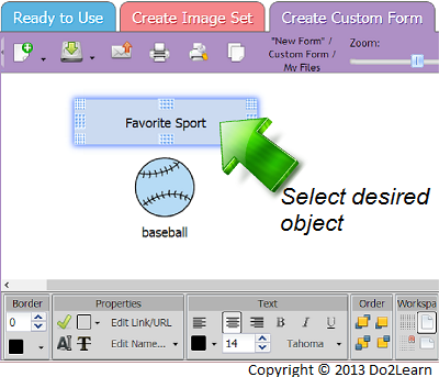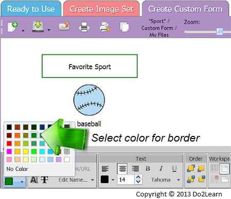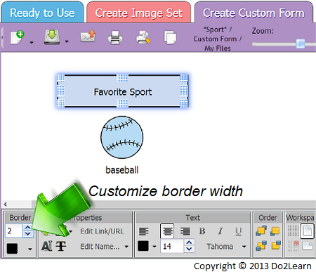 While working in the "Create Image Set" and "Create Custom Form" workspaces, you can add borders to images and text boxes to make them stand out.