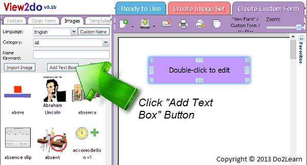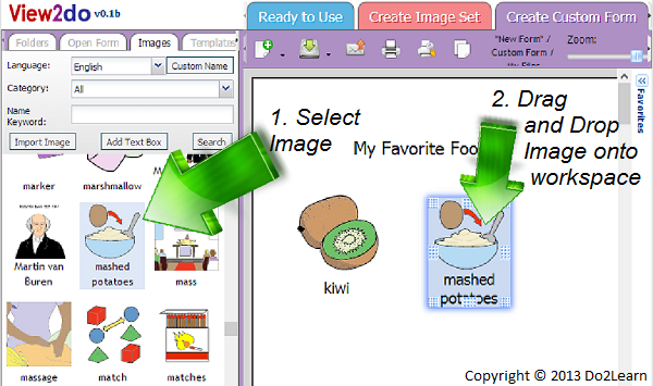 Create Custom Form allows you to create your own custom visual supports, worksheets, and schedules from scratch by adding text boxes and images to a blank form.