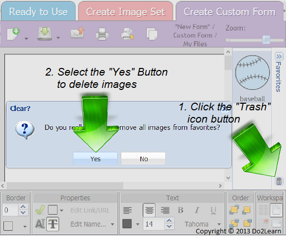 - When you are finished creating your custom worksheet or want to clear your Favorites for any reason, click the Clear Favorites button at the bottom of the menu. When asked if you want to remove all images from Favorites, click ‘Yes’.