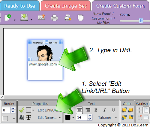 - To attach a Link/URL to a specific image or text box, select the desired object and then click the Edit Link/URL button in the Properties toolbar. Enter the website address in the editable field that appears.
