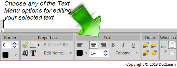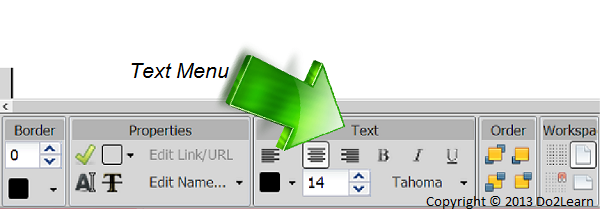 - First, locate the Text menu in the bottom of your workspace.
