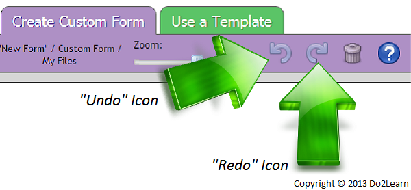To undo or redo an action while working on your document, click the Undo & Redo button below the Use a Template tab at the top of your workspace.