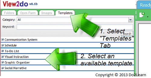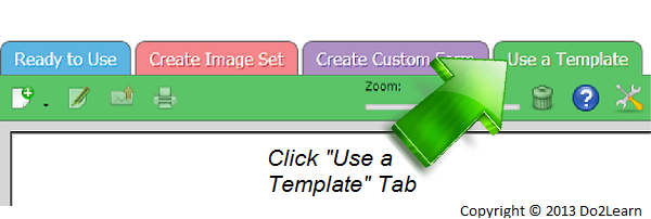 - "Use a Template" tab allows you to add images and text to a premade template.
